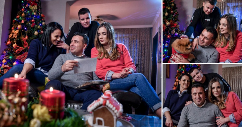 Премиерот објави семејни фотографии на кои позира покрај накитена елка заедно со сопругата Зорица, ќерката Александра и синот Душко.