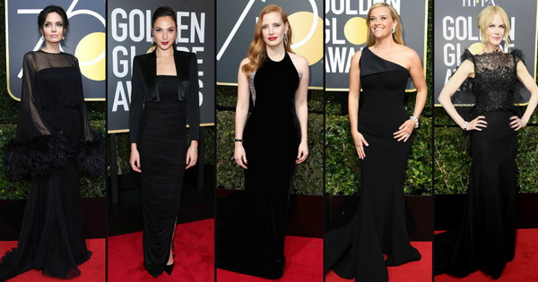 Црната боја владееше на црвениот тепих на „Златен глобус“. Со исклучок на неколку гостинки, сите дами носеа црни креации во знак на протест против сексуалното малтретирање и во знак на солидарност со оние кои биле злоупотребени и оние кои собраа храброст да проговорат.