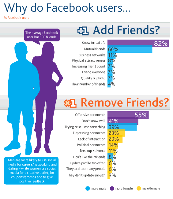 Постојат повеќе причини поради кои Facebook корисниците решаваат да го зголемат или намалат бројот на виртуелни пријатели на најпознатата друштвена мрежа. Според новиот инфографик на Nielsen, главната причина поради која луѓето ги откачуваат своите пријатели на Facebook се непријатните навредливи коментари.